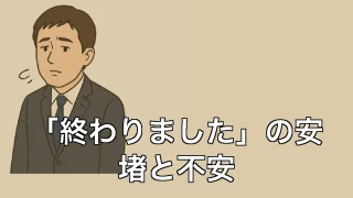 「終わりました」の安堵と不安 「終わりました」の安堵と不安 「終わりました」の一言がもたらす解放感 「終わりました」と誰かに伝えるとき、あるいは自分の中で呟くとき、ふっと肩の力が抜けることがある。案件がひと段落したとき、書類を提出し終えたとき、あるいは登記が完了したメー... 2025.06.20