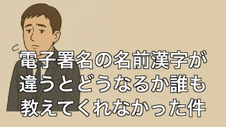 電子署名の名前漢字が違うとどうなるか誰も教えてくれなかった件 電子署名の名前漢字が違うとどうなるか誰も教えてくれなかった件 電子署名の名前漢字が違うとどうなるか誰も教えてくれなかった件 雨上がりの午後。静まり返った事務所の中で、俺――司法書士のシンドウは、いつものように書類の山と格闘していた。相棒のサ... 2025.08.01