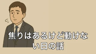 焦りはあるけど動けない日の話 焦りはあるけど動けない日の話 朝の支度が終わったのに動けない 朝、身支度を整えて、机に向かう。そこまではいつも通りなのに、なぜかパソコンの電源を入れる手が止まってしまう日がある。メールを開く気にもなれず、ぼんやりと机の上の書類を見つめている... 2025.07.31