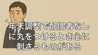 年末調整で配偶者なしに丸をつけるとき心に刺さるものがある 年末調整で配偶者なしに丸をつけるとき心に刺さるものがある 年末調整の時期が来ると毎年少しだけ沈む理由 司法書士という職業柄、年末調整の書類は自分で用意して自分で提出するのが常。慣れてはいる。慣れてはいるが、この書類に毎年「配偶者なし」と丸を... 2025.07.30