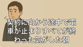 契約に向かう途中で電車が止まりすべてが終わった気がした朝 契約に向かう途中で電車が止まりすべてが終わった気がした朝 司法書士にとっての「立会」は勝負の場 登記手続きの「立会」は、司法書士にとって言わば試合当日である。野球で言えば、甲子園のマウンドに立つようなもの。事前の準備、確認、書類の整備、すべ... 2025.07.02