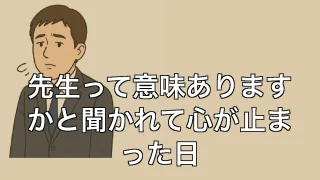 先生って意味ありますかと聞かれて心が止まった日 先生って意味ありますかと聞かれて心が止まった日 言葉に詰まった瞬間の衝撃と沈黙 ある日、ちょっとしたセミナーの後の雑談中、若い参加者からぽろりと「先生って意味ありますか?」と聞かれた。冗談半分にも聞こえたし、真剣にも聞こえた。何気ない一言に... 2025.07.01