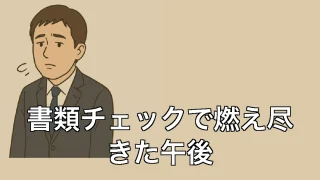 書類チェックで燃え尽きた午後 書類チェックで燃え尽きた午後 書類チェックで燃え尽きた午後 気づけば夕方。デスクの上にはチェック済みの書類が山のように積まれていたはずなのに、最後の数通に取りかかったあたりから急に頭が働かなくなった。疲労が一気に押し寄せてきて、手元の字が読... 2025.07.01
