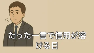 たった一言で信用が溶ける日 たった一言で信用が溶ける日 信頼は積み上げても一瞬で崩れる 司法書士という仕事は、信頼の上に成り立っています。毎日のように他人の人生に関わる書類を扱い、名前や住所、金額など、どれも一字一句間違えてはいけないものばかりです。そんな中で「うっか... 2025.06.30