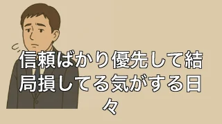 信頼ばかり優先して結局損してる気がする日々 信頼ばかり優先して結局損してる気がする日々 信頼を優先してしまう自分に気づいた瞬間 司法書士として15年以上やってきて、何よりも大切にしてきたのは「信頼」だ。依頼人との間に信頼関係が築ければ、仕事はうまく回ると信じてきたし、実際それで助けら... 2025.06.30