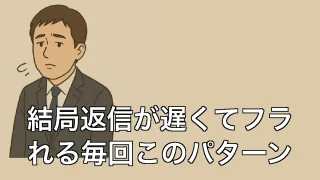 結局返信が遅くてフラれる毎回このパターン 結局返信が遅くてフラれる毎回このパターン またこのパターンかと頭を抱える夜 「今回こそは大丈夫だろう」と思っていても、気がつけば同じ結末を迎える。返信が遅くてフラれる──そんな悲しい繰り返しに、自分でももううんざりしている。仕事が忙しいとい... 2025.06.30