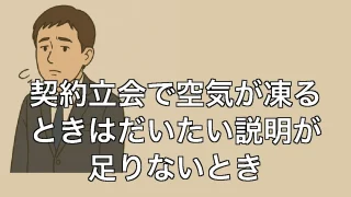 契約立会で空気が凍るときはだいたい説明が足りないとき 契約立会で空気が凍るときはだいたい説明が足りないとき 予想外の展開は突然やってくる 契約の立会いというのは、たいていの場合は淡々と進みます。事前に必要な書類を揃え、段取りを確認し、時間通りに現地に到着する。それだけでホッとした気分になること... 2025.06.30
