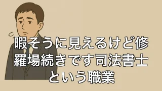 暇そうに見えるけど修羅場続きです司法書士という職業 暇そうに見えるけど修羅場続きです司法書士という職業 人に説明しづらい司法書士の忙しさ 「司法書士って何やってるの?」という質問、もう何度聞かれただろうか。こっちは毎日ドタバタしてるのに、周囲から見ればただの「机に座ってるおじさん」にしか見え... 2025.06.30