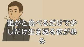 誰かと食べるだけで少しだけ生き返る夜がある 誰かと食べるだけで少しだけ生き返る夜がある 一人で食べるコンビニ弁当がしみる夜 仕事が終わる頃には、すでに街は静まり返っている。閉店間際のコンビニで何となく手に取った弁当と缶ビール。事務所に戻って、冷たい蛍光灯の下でそれを黙々と食べる。温め... 2025.06.30