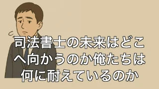 司法書士の未来はどこへ向かうのか俺たちは何に耐えているのか 司法書士の未来はどこへ向かうのか俺たちは何に耐えているのか 司法書士の未来はどこへ向かうのか俺たちは何に耐えているのか 朝一番の電話に怯える日々 朝イチの電話。事務所の電話が鳴る音が、いつの間にか恐怖の合図になっている。新しい依頼かと思いき... 2025.06.30