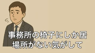 事務所の椅子にしか居場所がない気がして 事務所の椅子にしか居場所がない気がして 事務所の椅子に戻るたびに感じる安心と虚しさ 朝、事務所のドアを開けて真っ先に目に入るのが、自分の椅子。誰もいない空間にぽつんとあるその姿に、妙な安心感を覚えるのはどうしてだろう。家に帰っても誰も待って... 2025.06.30
