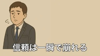 信頼は一瞬で崩れる 信頼は一瞬で崩れる 知らぬ間に壊れる信頼の話 司法書士という職業は、信頼の上に成り立っていると思う。契約書の一文、登記申請の一押し、依頼者とのやり取りの中で、こちらが何気なく交わした言葉ひとつが、相手の心に深く残っていたりする。だからこそ、... 2025.06.30