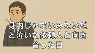 身内じゃないみたいだと泣いた依頼人と向き合った日 身内じゃないみたいだと泣いた依頼人と向き合った日 泣き出した依頼人に言われたひとことが胸に残った 「先生、あの人…身内じゃないみたいなんです」。面談中、そう言って女性の依頼人がぽろぽろと涙を流した瞬間、こちらまで胸が詰まった。相続の相談だっ... 2025.06.30