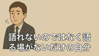 語れないのではなく語る場がないだけの自分 語れないのではなく語る場がないだけの自分 語れないのではなく語る場がないだけの自分 誰にも言えないって、実はけっこうしんどい 「最近どう?」という何気ない問いかけに、私はいつも言葉が詰まる。別に大したことはしていない。週末は仕事を片づけて、... 2025.06.30