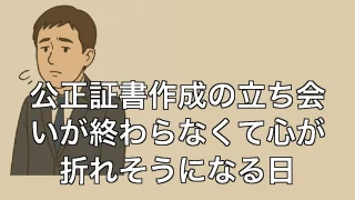 公正証書作成の立ち会いが終わらなくて心が折れそうになる日 公正証書作成の立ち会いが終わらなくて心が折れそうになる日 どうしてこんなに長いのかと思ってしまう瞬間 公正証書の作成に立ち会うというのは、司法書士にとって“よくある仕事”のひとつではあるものの、「これはいつまで続くんだろう」と感じる場面が珍... 2025.06.30