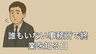誰もいない事務所で終業を知る日 誰もいない事務所で終業を知る日 終業時間の鐘に気づかない日々 ふと顔を上げると、事務所の中には自分しかいない。時計を見ると、とっくに定時を過ぎている。そんな日が、もう何度あっただろうか。パソコンの光と書類の山に囲まれて、時間の感覚がどこかへ... 2025.06.30