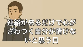 連絡が来るだけで心がざわつく自分が情けないと思う日 連絡が来るだけで心がざわつく自分が情けないと思う日 朝一番の通知音が怖い スマホの通知音で目が覚める。こんな日は大抵、心の準備ができていない。以前はメールでもLINEでも「誰からだろう?」と好奇心すらあったのに、今はもう違う。仕事の連絡か、... 2025.06.30