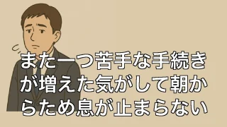 また一つ苦手な手続きが増えた気がして朝からため息が止まらない また一つ苦手な手続きが増えた気がして朝からため息が止まらない 得意なはずのはずがいつの間にか苦手に変わっていた 司法書士という職業柄、手続きには強いと思われがちだ。いや、実際に得意なジャンルもある。登記関係や相続関係などはある程度慣れもある... 2025.06.30
