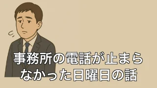 事務所の電話が止まらなかった日曜日の話 事務所の電話が止まらなかった日曜日の話 休む気満々だった日曜日の朝に鳴った電話 その日曜、目覚ましをかけずに寝ていた。珍しく前日に予定もなく、今日はゆっくりしようと心に決めていた。コーヒーでも淹れて録画したドラマでも見て、少し散歩でもして、... 2025.06.30