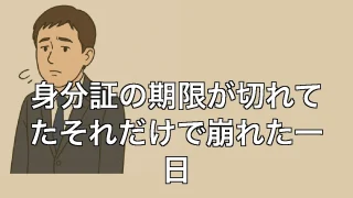 身分証の期限が切れてたそれだけで崩れた一日 身分証の期限が切れてたそれだけで崩れた一日 朝イチで発覚した身分証の期限切れ 朝一番、役所の窓口でふと気づいた。「あれ、免許証…?」差し出した身分証を見た職員が一瞬間を置いて言った。「あ、こちら、期限切れですね」。その瞬間、背筋が凍った。何... 2025.06.30
