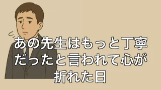 あの先生はもっと丁寧だったと言われて心が折れた日 あの先生はもっと丁寧だったと言われて心が折れた日 あの一言で空気が変わった気がした ある日、登記の相談でやってきた依頼人との打ち合わせの最中、「あの先生はもっと丁寧に説明してくれたんですけど」とポロっと言われた瞬間、胸にズシンと重い石が落ち... 2025.06.30