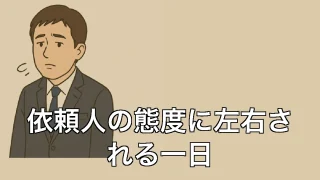 依頼人の態度に左右される一日 依頼人の態度に左右される一日 朝の電話一本でその日の気分が決まる 朝一番にかかってくる電話。それだけで一日のテンションが決まってしまうことがあります。「おはようございます、○○司法書士事務所です」と名乗った直後、依頼人の機嫌が悪そうだと、も... 2025.06.30