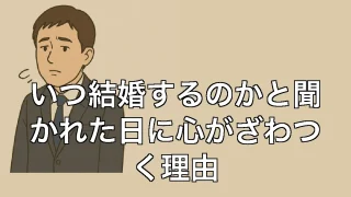 いつ結婚するのかと聞かれた日に心がざわつく理由 いつ結婚するのかと聞かれた日に心がざわつく理由 その一言が胸を刺す瞬間 「いつ結婚するの?」――この言葉を聞くたびに、心のどこかに小さなトゲが刺さるのを感じる。45歳独身、地方で司法書士を営んでいるが、親戚や知人との何気ない会話の中でこの質... 2025.06.30