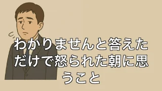 わかりませんと答えただけで怒られた朝に思うこと わかりませんと答えただけで怒られた朝に思うこと 静かな朝に降ってきた雷のような言葉 朝の事務所は、いつもより少しだけ静かだった。コーヒーを淹れて、デスクに座ってメールを確認していたとき、事務員から「この書類の処理って、どう進めたらいいですか... 2025.06.30