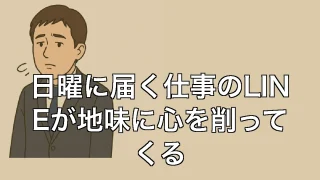 日曜に届く仕事のLINEが地味に心を削ってくる 日曜に届く仕事のLINEが地味に心を削ってくる 休むはずの日曜に届く通知の音 日曜の午後。ようやく家でコーヒー片手にソファでひと息ついたところで「ピコン」とLINEの通知音が鳴る。その瞬間、頭の中がざわつく。プライベートの連絡ならいい。でも... 2025.06.30