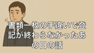 書類一枚の手違いで登記が終わらなかったあの日の話 書類一枚の手違いで登記が終わらなかったあの日の話 なぜこんな些細なミスで時間が溶けるのか 司法書士をやっていると、「あの確認、ちゃんとしてたはずなんだけどな…」という瞬間が山ほどある。今回の話もその一つだ。法務局から戻ってきた申請書一式を見... 2025.06.30