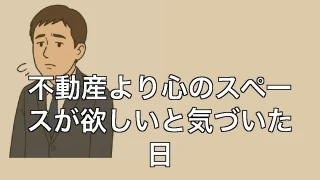 不動産より心のスペースが欲しいと気づいた日 不動産より心のスペースが欲しいと気づいた日 広さじゃない 心が置き去りだったことに気づくまで 司法書士として働いていると、安定や将来設計といった言葉がやたらと現実味を帯びてくる。だからこそ「マイホームが欲しい」と思ったのは自然な流れだった。... 2025.06.30
