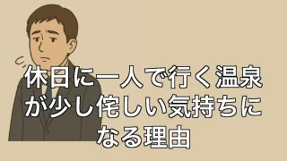 休日に一人で行く温泉が少し侘しい気持ちになる理由 休日に一人で行く温泉が少し侘しい気持ちになる理由 温泉の湯けむりに紛れる寂しさ 休日にふと思い立って、車を一時間ほど走らせて温泉に向かうことがある。日帰りの温泉施設は静かで、露天風呂から見える山の景色も美しい。確かに気持ちはいい。体の疲れも... 2025.06.30