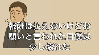 報酬は払えないけどお願いと言われた日僕は少し壊れた 報酬は払えないけどお願いと言われた日僕は少し壊れた 報酬は払えないけどお願いと言われた日僕は少し壊れた ある日突然のお願い事 それは、特に変わり映えのしない平日だった。いつものように机の上の書類を睨みながら、事務員さんと手分けして登記申請の... 2025.06.30
