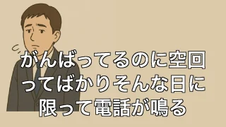 がんばってるのに空回ってばかりそんな日に限って電話が鳴る がんばってるのに空回ってばかりそんな日に限って電話が鳴る がんばってるのに空回る日の正体とは 自分なりに頑張っているつもりでも、結果が伴わない日というのはある。むしろ、そういう日に限って無駄に力が入ってしまって、周りの反応もどこかちぐはぐに... 2025.06.30