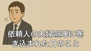 依頼人の夫婦喧嘩に巻き込まれた日のこと 依頼人の夫婦喧嘩に巻き込まれた日のこと 依頼人の夫婦喧嘩に巻き込まれた日のこと 朝の電話からすでに空気が怪しかった あの朝は、珍しく早い時間から事務所の電話が鳴った。まだコーヒーを一口飲んだだけで、パソコンの電源も入れていなかった。受話器越... 2025.06.30