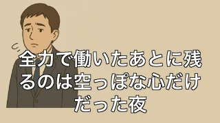 全力で働いたあとに残るのは空っぽな心だけだった夜 全力で働いたあとに残るのは空っぽな心だけだった夜 忙しさの果てに見つめる空っぽな夜 今日も気づけば終電ぎりぎりの時間。事務所の電気を消し、駅までの道をひとり歩きながら、ふと「何のためにここまで働いているんだろう」と呟いてしまう。目の前の業務... 2025.06.30
