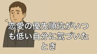 恋愛の優先順位がいつも低い自分に気づいたとき 恋愛の優先順位がいつも低い自分に気づいたとき 気づけば恋愛がずっと後回しだった 日々の業務に追われるうちに、恋愛という言葉が自分の生活から抜け落ちていたことに、ふと気づいたんです。若い頃は「そのうち誰かと出会うだろう」と気楽に構えていました... 2025.06.30