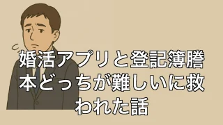婚活アプリと登記簿謄本どっちが難しいに救われた話 婚活アプリと登記簿謄本どっちが難しいに救われた話 登記簿謄本の読み方より難しいものがあるなんて 司法書士として登記簿謄本を読むのは日常茶飯事だ。最初は慣れず、数字と文字の羅列に目がチカチカしたものだが、経験を積むにつれて「ここがこうなって、... 2025.06.30