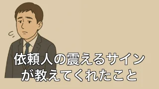 依頼人の震えるサインが教えてくれたこと 依頼人の震えるサインが教えてくれたこと 字が読めないという現実に立ちすくんだ日 ある日の午後、少し早めに到着された高齢の依頼人が、登記申請のために必要な書類に署名をしようとした瞬間、その手が小刻みに震えていたのを今でもよく覚えている。丁寧に... 2025.06.30