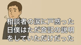 相談者の涙に戸惑った日僕はただ登記の説明をしていただけだった 相談者の涙に戸惑った日僕はただ登記の説明をしていただけだった 泣き出した相談者と沈黙の時間 その日、相談に来たのは30代後半くらいの女性だった。戸籍の話から始まり、相続登記の手順を淡々と説明していたはずだった。特に感情を揺さぶるような話をし... 2025.06.30
