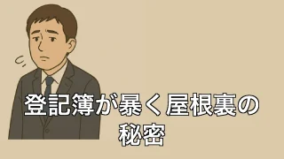 登記簿が暴く屋根裏の秘密 登記簿が暴く屋根裏の秘密 午前八時の訪問者 「朝から来るってどういう了見なんだ……」と愚痴をこぼしながらドアを開けると、そこには中年の男性が立っていた。 ボサボサの髪とくたびれたスーツが、彼の今の生活を物語っている。名刺には「○○不動産」と... 2025.08.08