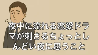 夜中に流れる恋愛ドラマが刺さるちょっとしんどい夜に思うこと 夜中に流れる恋愛ドラマが刺さるちょっとしんどい夜に思うこと 恋愛ドラマが胸に刺さる夜にふと立ち止まる 夜中にふとテレビをつけると、流れていたのは甘ったるい恋愛ドラマ。ふだんなら興味も示さないはずなのに、その日はなぜか目が離せなかった。仕事終... 2025.06.26