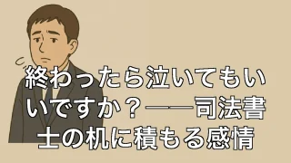 終わったら泣いてもいいですか?――司法書士の机に積もる感情 終わったら泣いてもいいですか?――司法書士の机に積もる感情 終わらせるまでは泣けない――仕事に感情を挟む余裕なんてない 登記の締切、電話対応、郵便物、補正…司法書士という仕事は“いつでも誰かが待っている”というプレッシャーの連続だ。感情なん... 2025.06.25