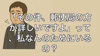「その件、郵便局の方が詳しいですよ」って、私なんのためにいるの? 「その件、郵便局の方が詳しいですよ」って、私なんのためにいるの? クライアントにとっての“専門家”とは誰なのか 司法書士というと、登記や法務手続きを任される専門職のはずなのに、なぜか郵便のことばかり聞かれることが増えた。とくに最近は、郵送ト... 2025.06.25
