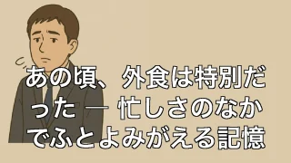 あの頃、外食は特別だった ― 忙しさのなかでふとよみがえる記憶 あの頃、外食は特別だった ― 忙しさのなかでふとよみがえる記憶 あの頃、外食は“ごちそう”だった 子どものころ、外食は特別な日のイベントだった。誕生日や運動会の帰りに立ち寄るファミレス、祖父母と一緒に行った中華料理屋、ちょっと背伸びして入っ... 2025.06.25