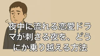 夜中に流れる恋愛ドラマが刺さる夜を、どうにか乗り越える方法 夜中に流れる恋愛ドラマが刺さる夜を、どうにか乗り越える方法 あのドラマのキスシーンが、なぜか胸に刺さる 夜中、事務所から帰ってきて、コンビニ飯を温めながら何となくつけたテレビ。ぼんやりと眺めていると、恋愛ドラマの佳境。美男美女が泣いたり、笑... 2025.06.25