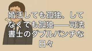 婚活しても孤独、してなくても孤独——司法書士のダブルパンチな日々 婚活しても孤独、してなくても孤独——司法書士のダブルパンチな日々 誰とも繋がれない日常に、ふと心が折れる 司法書士という仕事は、案外「誰かと深く話す機会」が少ない。登記業務に追われ、顧客とは事務的なやりとりだけで終わる。事務員とも必要最低限... 2025.06.25