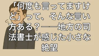 「何度も言ってますけど」って、そんな言い方ある?――地方の司法書士が感じた小さな絶望 「何度も言ってますけど」って、そんな言い方ある?――地方の司法書士が感じた小さな絶望 「何度も言ってますけど」で始まる心の崩壊 「何度も言ってますけど」――この一言、効きますね。僕は45歳の地方の司法書士です。事務所では事務員さんが一人いて... 2025.06.25