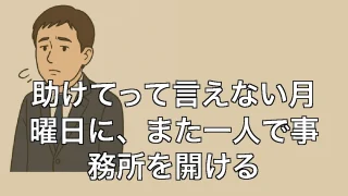 助けてって言えない月曜日に、また一人で事務所を開ける 助けてって言えない月曜日に、また一人で事務所を開ける 月曜日が来るのが怖い、という感覚 月曜日になると、心のどこかがざわつく。これは何も特別な事件があるわけじゃない。むしろ何もないのがつらい。週明けというだけで、電話が鳴る気がして、メールが... 2025.06.25