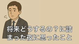 将来どうするの?に詰まった夜に思ったこと 将来どうするの?に詰まった夜に思ったこと 将来を聞かれて固まった夜、司法書士という肩書きの重さを感じた ある夜、久しぶりに会った友人にこう聞かれた。「で、将来どうするの?」と。何気ない一言のはずなのに、僕の心はドッと沈んだ。自分の人生のこと... 2025.06.25